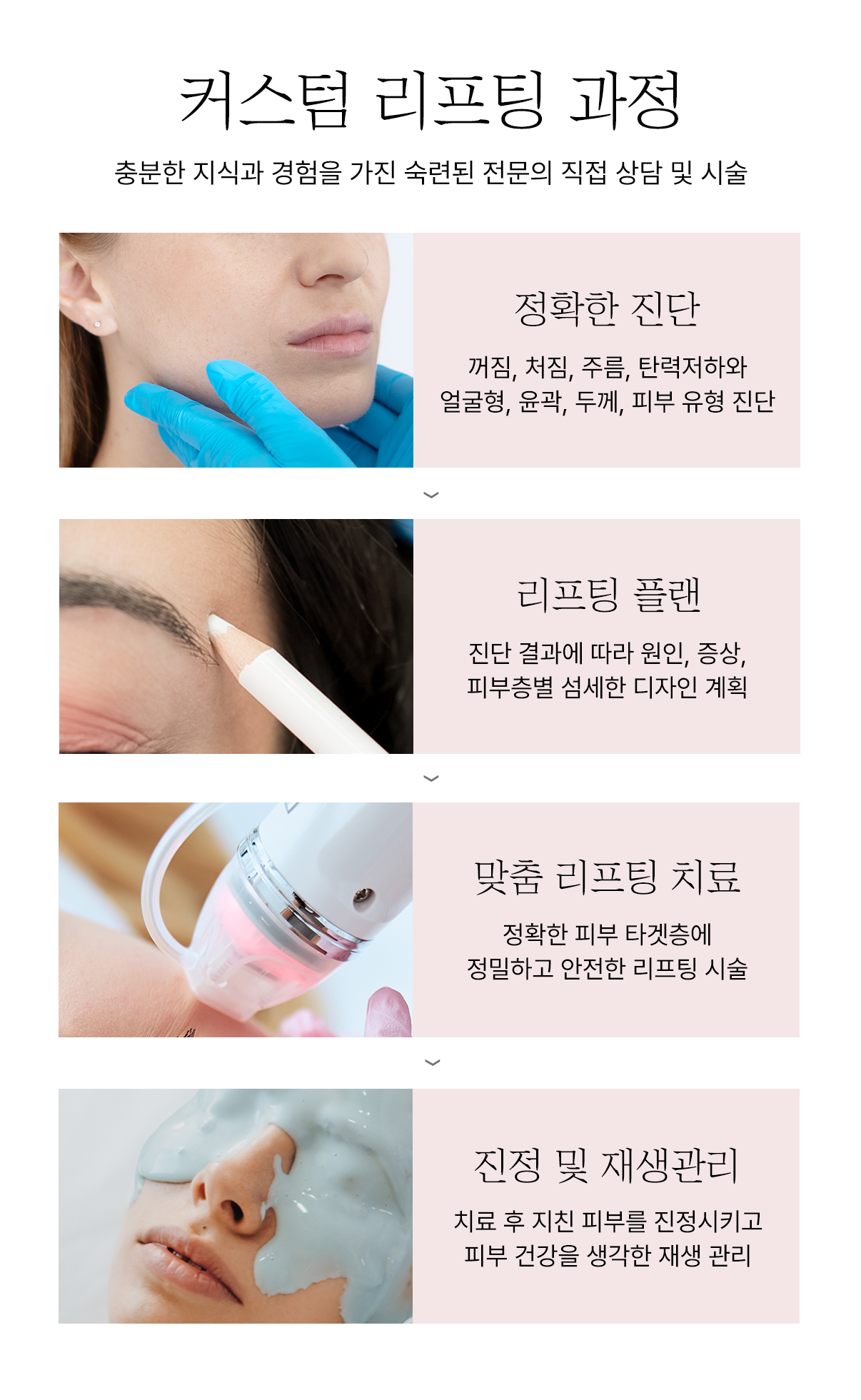얼굴라인과 이중턱 개선, 피부 탄력 증대 등 효과를 기대할 수 있습니다.